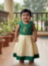 Kerala kasavu kids dress is a traditional attire worn by children in the South Indian state of Kerala. The dress typically consists of a white cotton top with golden zari border, paired with a matching white cotton skirt with golden zari stripes. The dress is often accessorized with gold jewelry and can be worn for special occasions such as weddings, festivals, and cultural events. The intricate design and unique color combination of the dress make it a popular choice among parents looking for traditional attire for their children.
